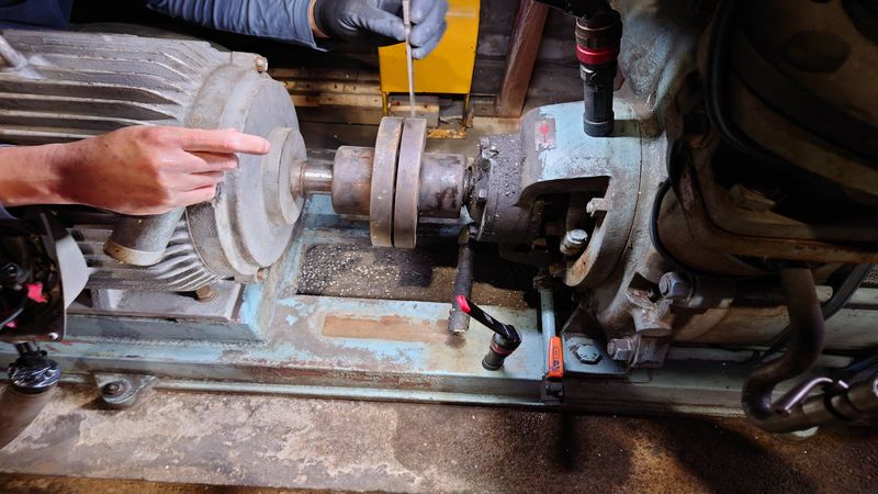工事内容: ポンプのモーターの芯出し作業
