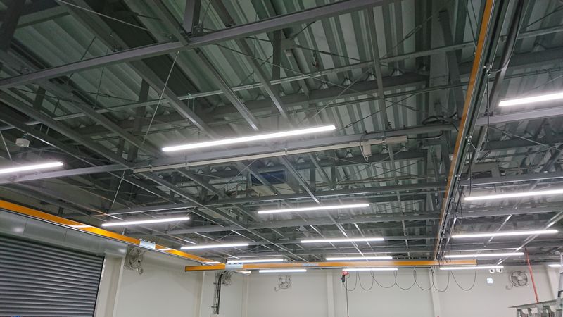 部品加工のワークを移動させる為に16mX10mの広い範囲をカバーするクレーンを設置しました。走行と横行は電動も検討されましたが、搬送するものが重量物でないこと、また予算が安くなることを加味した上で、この軽レールクレーンシステムを導入致しました。走行と横行は手動ですがこれだけ長いレールでも非常に軽くスムーズに動きます。お客様にも喜んで頂きまして現在毎日使用して頂いております。