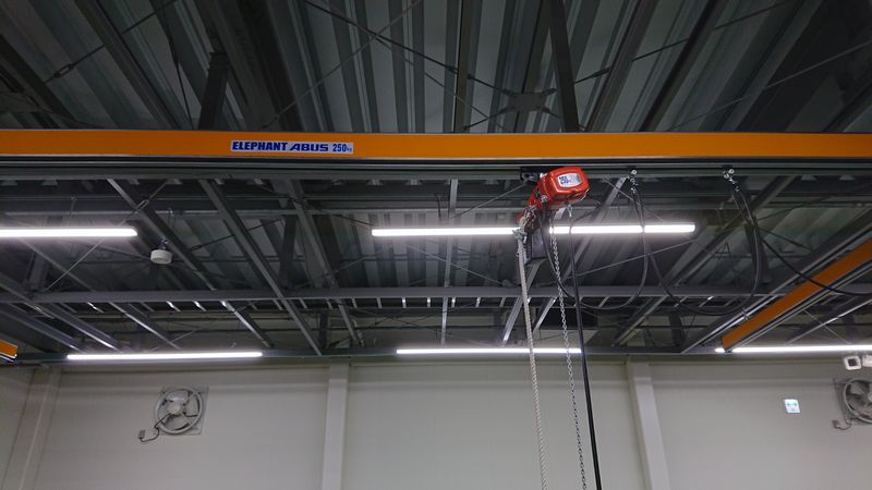 工事内容: 後付けのクレーン設置工事 サイズ:横行10mX走行16m 定格荷重:250kg 揚程:5m →横行と走行は手動、上下は電動 (メーカー:象印チェンブロック 軽レールクレーンシステム)