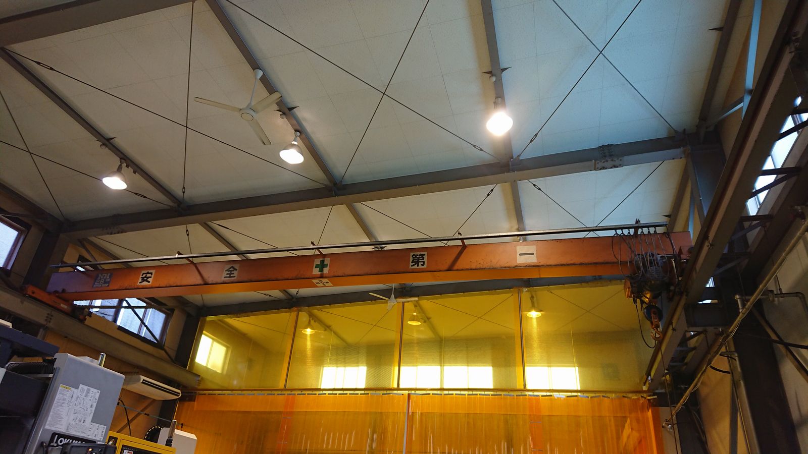工場現場に大型トラックが入る際に、シャッターを全開にする必要があり、どうしても冬場は冷気が入り、工場内の温度が下がってしまう環境にありました。今回トラックが入る部分(カーテンより奥側)と製造現場(カーテンより手前)を分ける為に、間仕切り工事を行いました。どちらからも製品の移動が出来るようにカーテンは真ん中から手動で引分け出来るように設計を致しました。完成後は現場環境が改善されました。