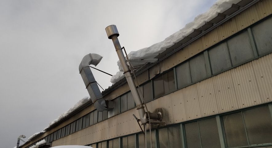 工事内容: 雪の重みで折れた排気ダクト(サイズ:700X400)と煙突(SUS・サイズ:φ250)の撤去と交換取付け工事