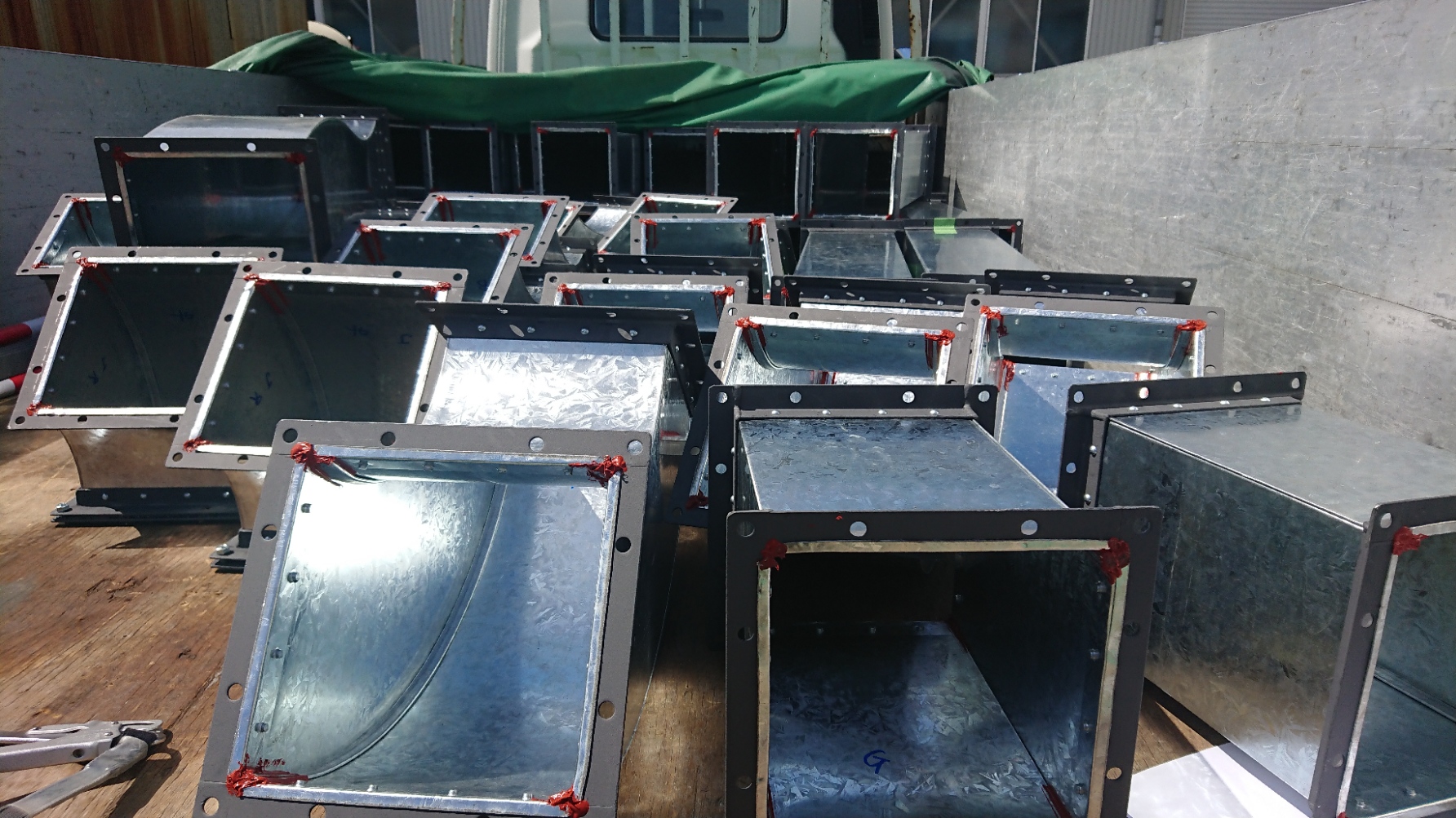 部品の塗装部門での乾燥炉用の排気ダクトの交換工事