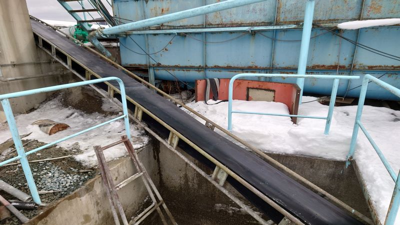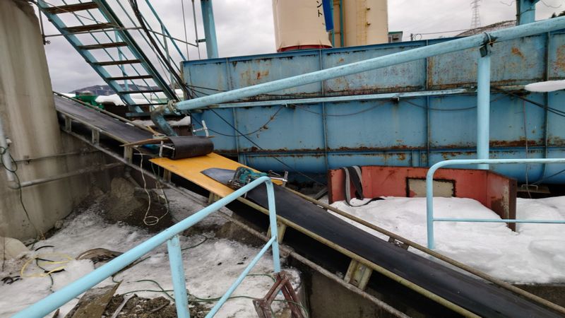 工事内容: コンクリート搬送用のコンベアベルトの交換作業 ベルトサイズ:幅600mm 長さ15m